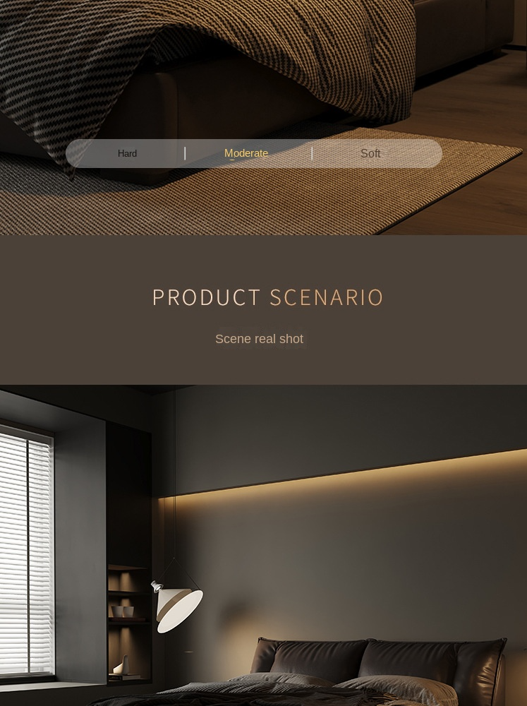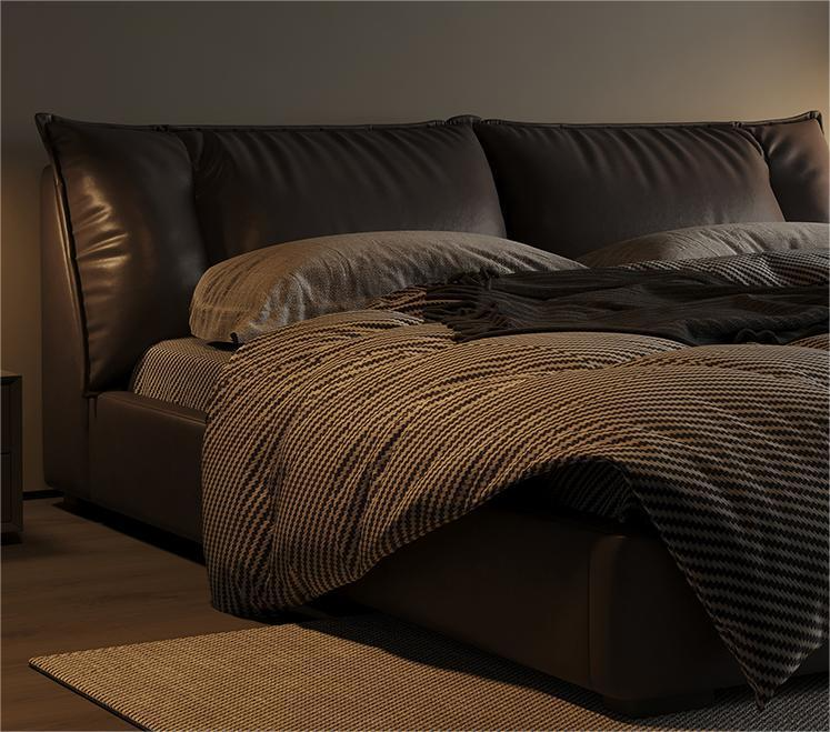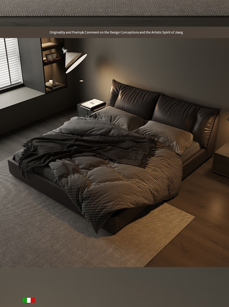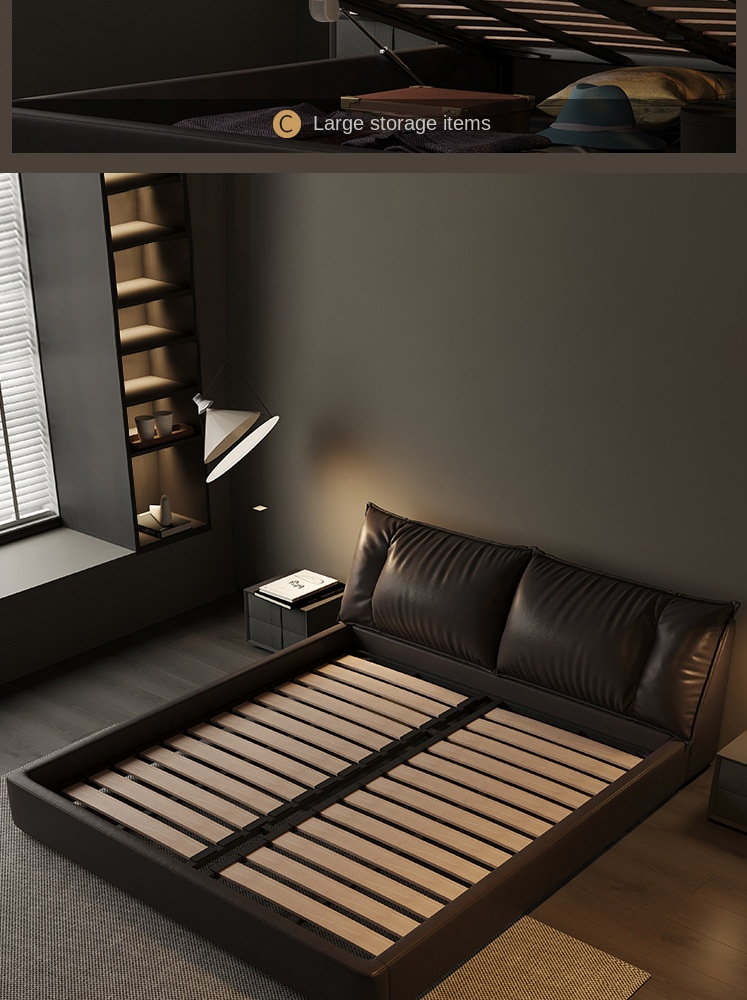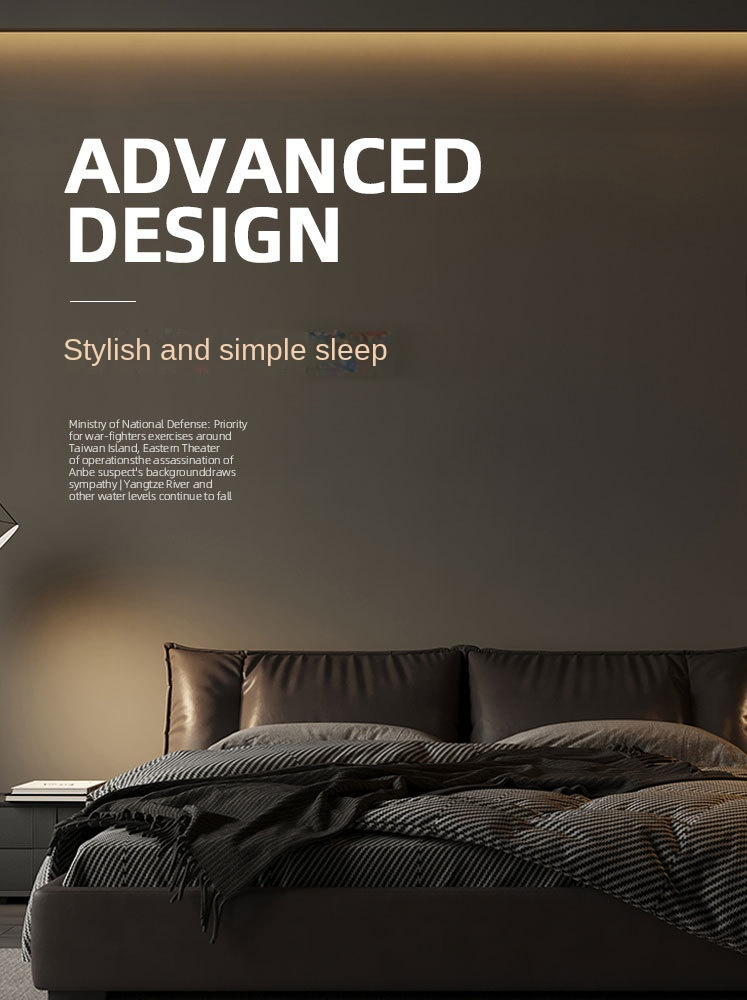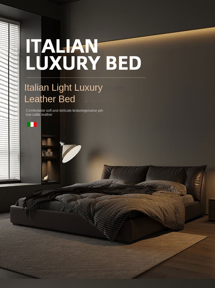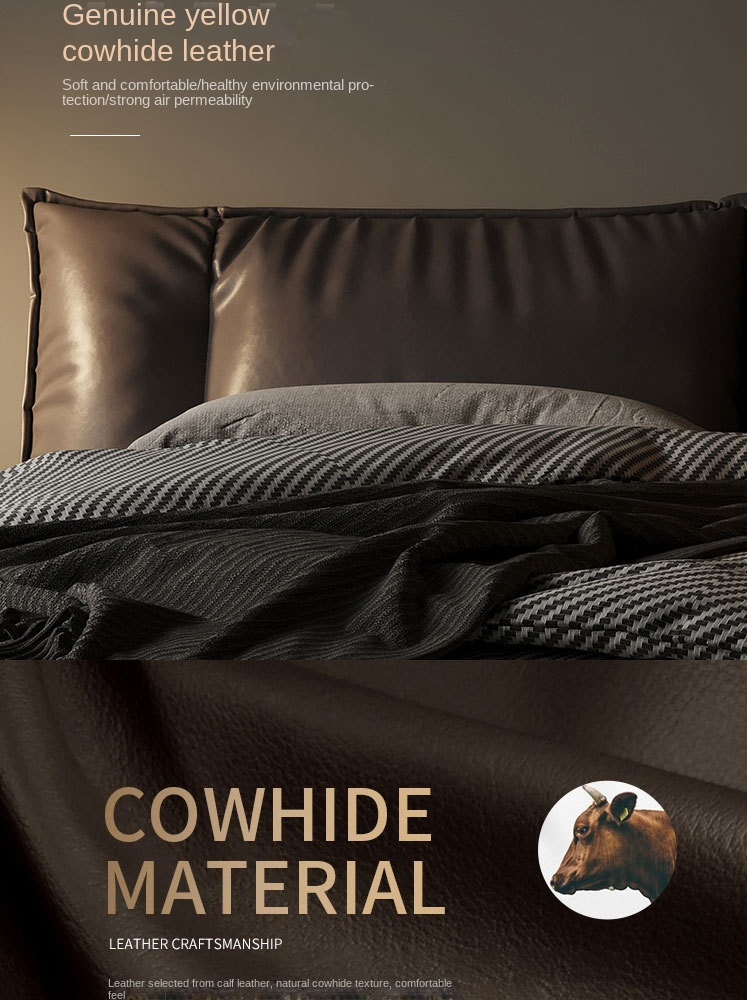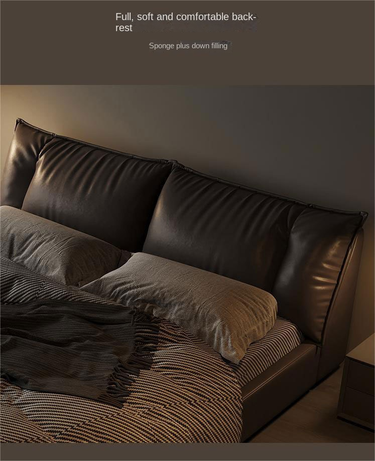 ArclineHome Italian minimalist leather headboard, cowhide tatami bed, master bedroom, down soft bag bed