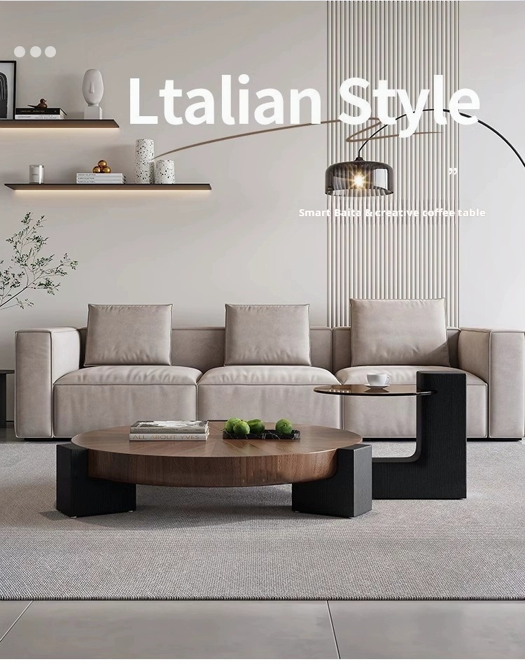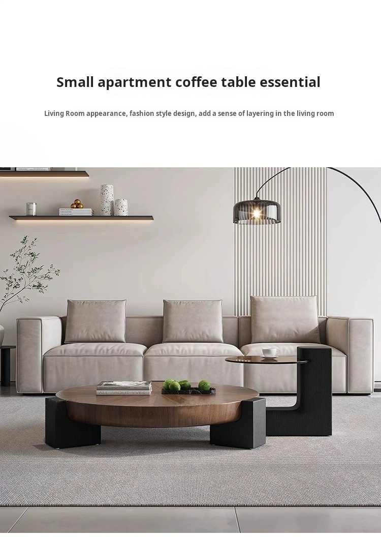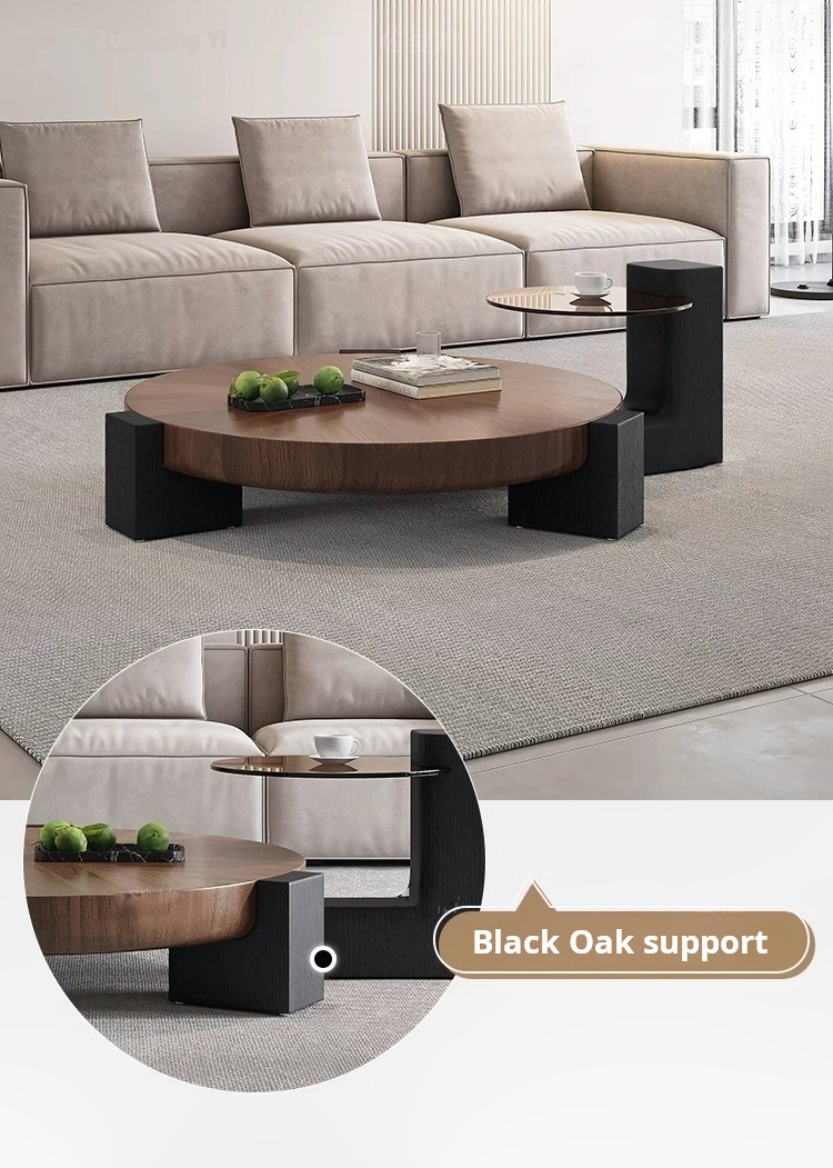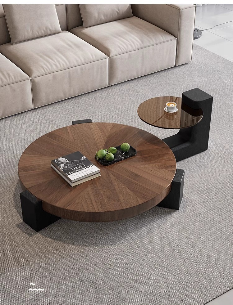 ArclineHome Italian minimalist solid wood grain large and small coffee table combination round walnut color tea table