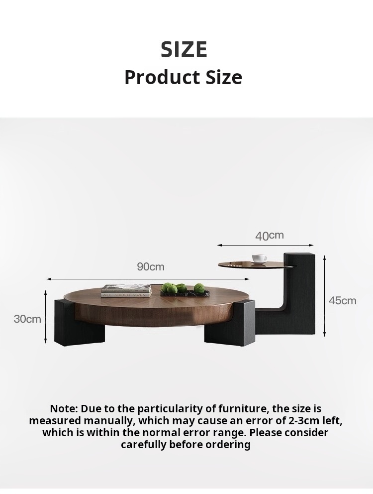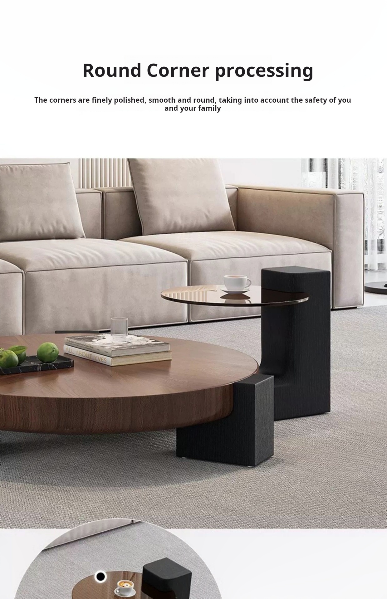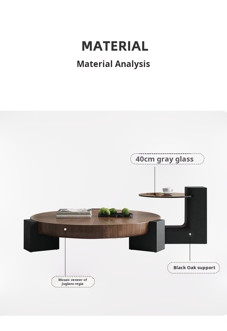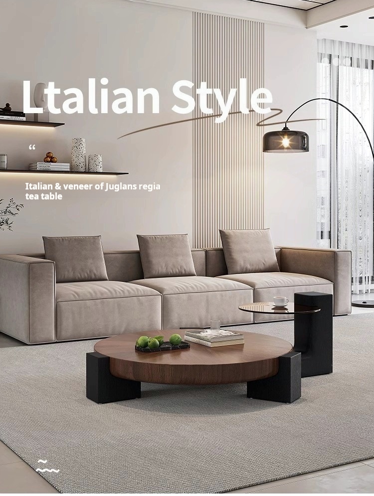 ArclineHome Italian minimalist solid wood grain large and small coffee table combination round walnut color tea table
